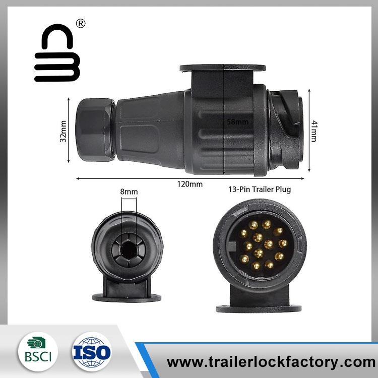 Deze Yougheng 13 -pin -connector biedt een veilige verbinding tussen uw trailer en sleepvoertuig. Zwarte plastic constructie voorkomt roesten, verbetert het uiterlijk en maakt het verwijderen van plug
