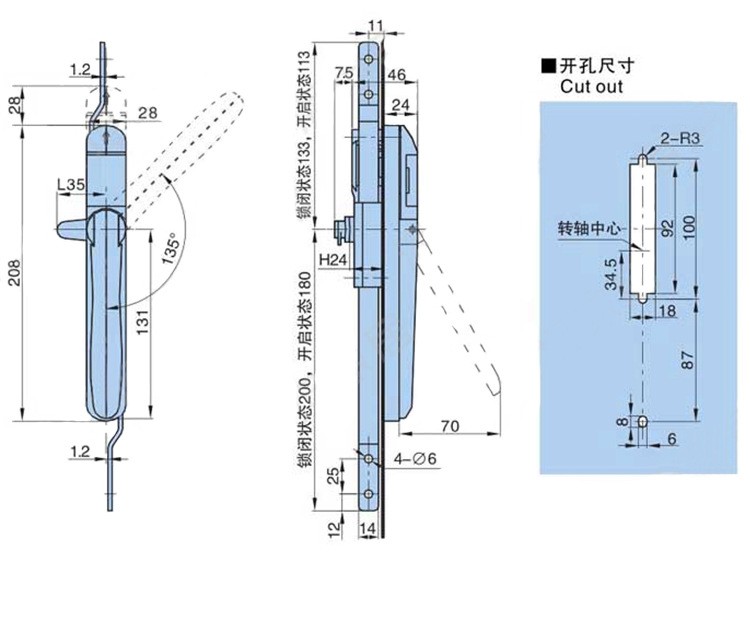 - Toepasselijk voor 5G -communicatiekasten, bedrijfsnetwerkkasten. Beschikt over een hemel- en stangvergrendeling en het ontwerp van de industriële kastvergrendeling.